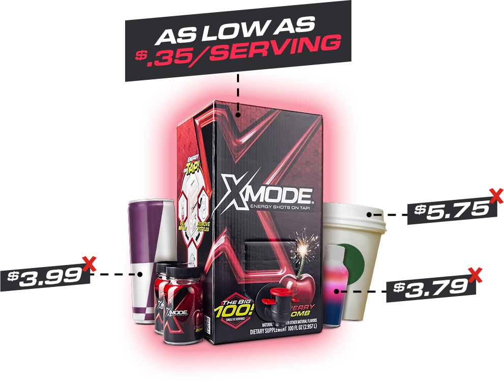 Not only does XMODE provide a quick and effective energy boost, but it also helps you save significantly with every serving. Why spend more when you can enjoy the benefits of increased energy and focus at a fraction of the cost with XMODE?