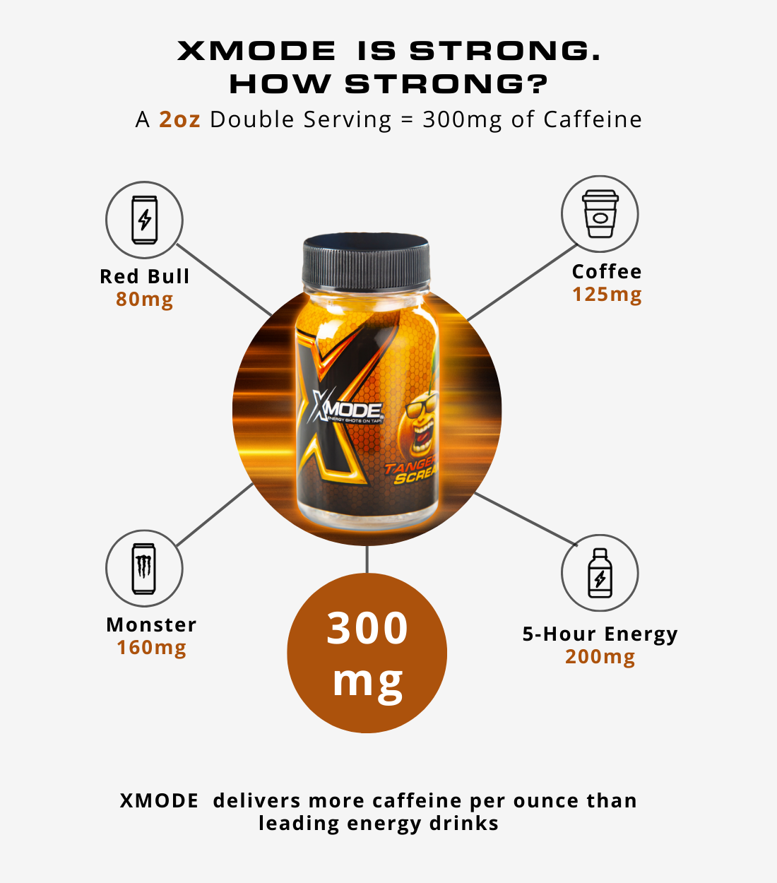 • Instant Jolt: 300mg caffeine ≈ 3 cups of coffee in seconds.